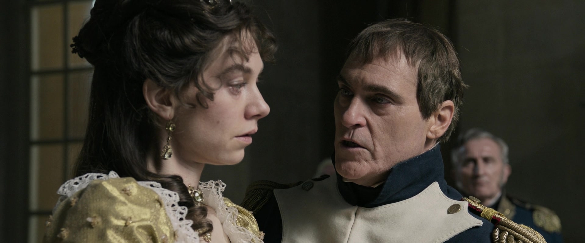 حجم قابل توجهی از فیلم مملو از نبردها انفجارها و شلیکهای توپخانه و تفنگ است که در نبردهای مرسوم آن موقع شاهدیم و در خلال این لحظات ما ارتباط عاطفی ناپلئون و ژوزفین را هم به صورت یک در میان میبینیم از قرار معلوم سعی اسکات بر این بوده که بین تمایلات احساسی و روابط ناپلئون با زنان با رویکرد تمامیت خواهانهاش در حکومت داری حلقهای مشترک پیدا کند که آن حلقه احساس عدم کفایتی است که ناپلئون در خود با آن دست و پنجه نرم میکند. این تم کلیدی که پس زمینه کلی فیلم را تشکیل میدهد در نفس خود حرکت درست و به جایی است اما باز برمیگردیم به همان بحث اول که آیا فیلمساز فرصت مناسب برای رسیدن به این مفهوم را داشته یا خیر پراکندگی وقایع و لوکیشنهای متعدد جلوی همراهی و در کنار فیلم بودن مخاطب را میگیرد و هر بار باعث میشود تا آن بزنگاه حسی که برای مخاطب باید در ناخودآگاهش موثر واقع شود، در بهترین شرایط یک خراش سطحی باشد.